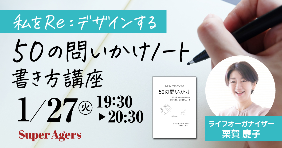 本講座は、「私をRe:デザインする50の問いかけノート」を使い、モノの片付けと向き合いながら、自分の暮らしや考え方を整理していく体験型の講座です。
